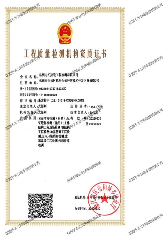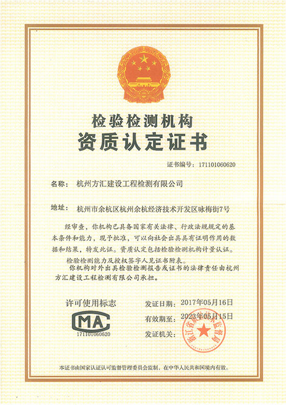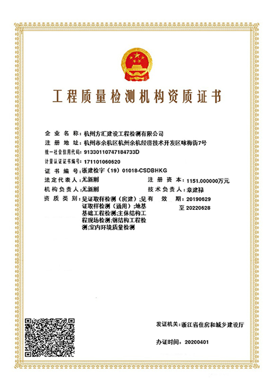 工程質(zhì)量檢測機構(gòu)資質(zhì)證書